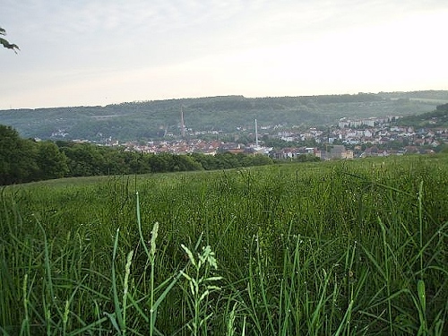 Kaum ist der erste Kilometer vorbei, fühle ich mich an den Artikel vom Mount Everest erinnert: Es läuft nichts mehr. Der Weg ist matschig und schmal und den Läuferscharen nicht gewachsen. Das Feld steht. Das ist fast die nächsten 2 km noch so. Da hat man dann Zeit, sich den Blick zurück nach Eisenach zu gönnen und sich etwas näher mit dem Burschenschaftsdenkmal auf der rechten Seite des Weges zu beschäftigen.