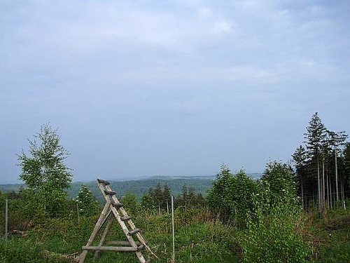 Immer wieder gibt es schöne Ausblicke auf die umliegenden Hügel. Manchmal muss man aber auch ein paar Schritte abseits laufen, um diese genießen zu können. Die Zeit sollte man sich aber nehmen. Es lohnt sich. Zeit ist beim Rennsteig sowieso „relativ“. Das ewige auf und ab kostet nicht nur Kraft, sondern auch Sekunden und Minuten.