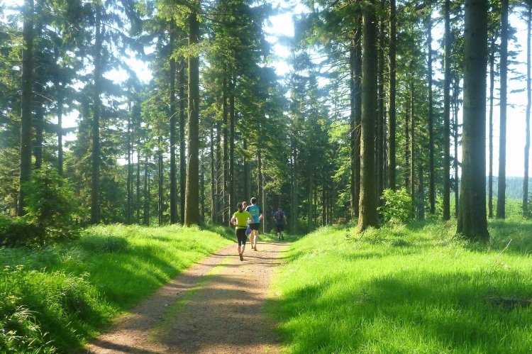 Wir überholen drei Läuferinnen in rosa Shirts, die an den Lauf durch den Rennsteigtunnel im Jahr 2003 erinnern. Der Tunnel verläuft an dieser Stelle 200 Meter unter uns und ist mit 7.916 Metern der viertlängste doppelröhrige Straßentunnel Europas und – Manfred aufgepasst – er ist auch für Gäste aus den im Süden angrenzenden Staaten mautfrei zu benutzen.