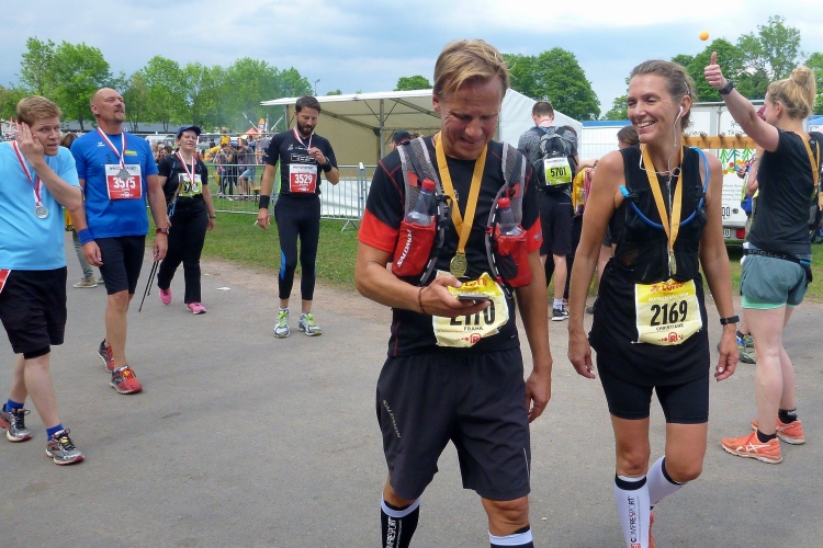 Inzwischen kennt man einige der Begleiter. Christian und Eugen fragen mich zum wiederholten Male, ob ich schon ihre Einwilligung habe, sie zu fotografieren. Die neue Datenschutzverordnung lässt grüßen. Nicht jede(r) weiß offenbar, zu was er seine Einwilligung gibt, wenn er sich zu einem Lauf anmeldet. Es dauert ein wenig, bis ich erkenne, dass man mich nur veräppeln will.