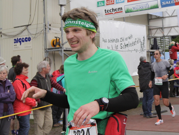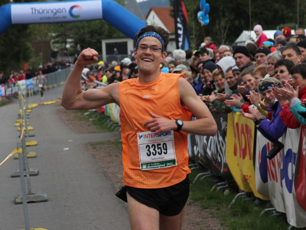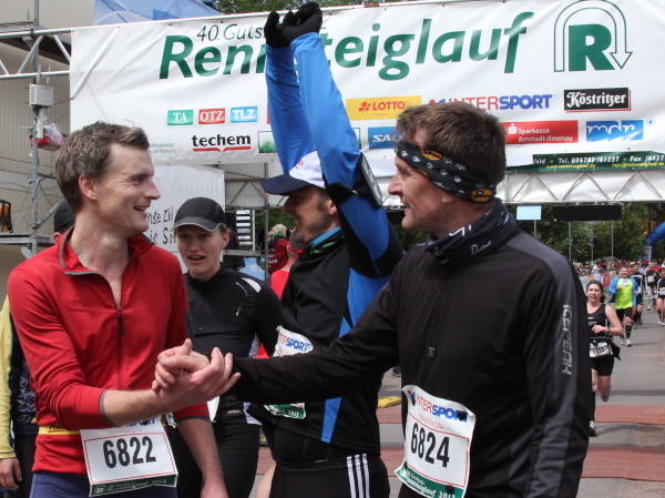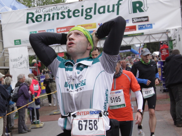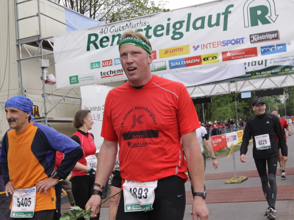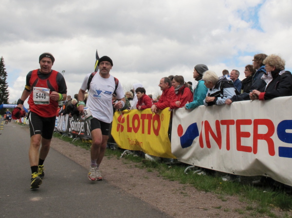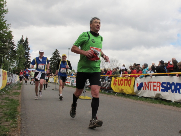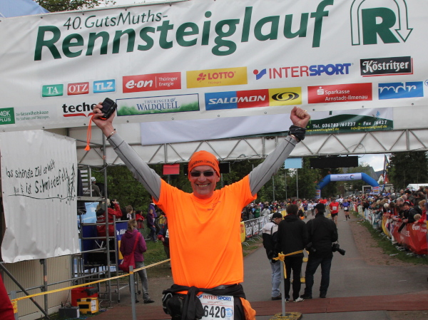 Als ich endlich aus Schmiedefeld herausfuhr, standen die Chancen für eine zweite Teilnahme schlecht. Dann hatte ich auf der Fahrt ein paar Stunden Zeit, um nachzudenken. Als ich zu Hause war, war mir klar, dass es einen Lauf wie den Rennsteig nicht zweimal gibt. Und dass man Fehler, wie ich sie machte, ja nur einmal macht. Meine Berichte kennt Ihr ja inzwischen.