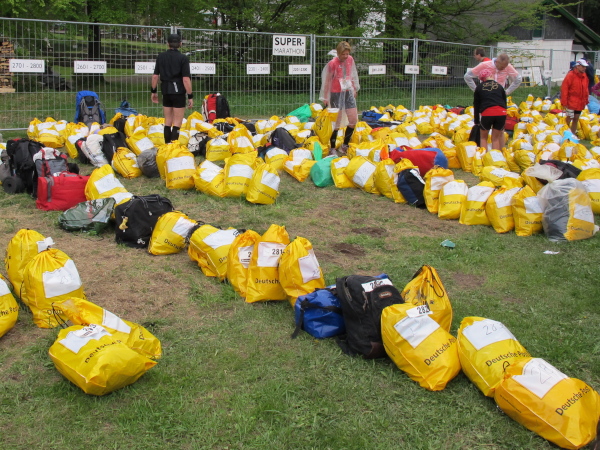 Ich habe vielleicht dumm geschaut, als ich meinen Kleiderbeutel auf der Gepäckwiese in Augenschein nahm. Meine Wechselkleider waren mindestens genauso nass, wie die, die ich anhatte. Wie oft ich an diesem Tag den Rennsteig samt seinen Lauf zum Teufel wünschte, weiß ich nicht mehr. Denn es ging noch weiter.