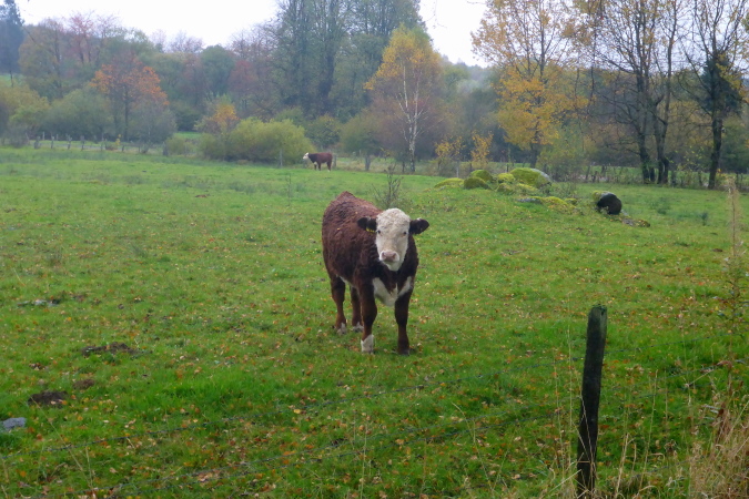 Mir kommt zugute, dass ich die Strecke ein wenig kenne. Vor 4 Jahren war ich schon mal hier, in Hachenburg, beim Löwenlauf. Die Rundsporthalle ist der Startplatz. Nur war das Ziel damals auf dem schönen Marktplatz unter dem goldenen zweigeschwänzten Löwen. Heuer geht es zur Rundsporthalle zurück. Aber erstmal über die Straßen raus aus dem Ort. Nach etwa 3 km bin ich im Wald und schon 160 m höher. Der Nieselregen hört auf, macht auch auf Ebbe. Herrlich, die Ruhe. Und die Herbstfarben erst. Und dann noch die Aussicht - Laufen ist doch was Schönes.