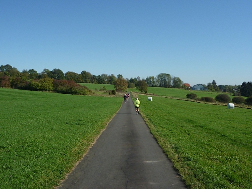 An der alten Ziegelei vorbei, wo noch der Heinzelmann wohnt, gelangen wir nach Hachenburg zurück. Kinder stehen am Strassenrand. Den Film vom Herbert gestern noch im Hinterkopf, als er mit seinen weissen Schützlingen duch die Hochlanddörfer joggt und sich spontan die ganze Dorfgemeinschaft dem Tross anschliesst, fordere ich die Kinder auf, doch den letzten Kilometer mit mir ins Ziel zu laufen.....doch die bringen keine 50 Meter zustande.