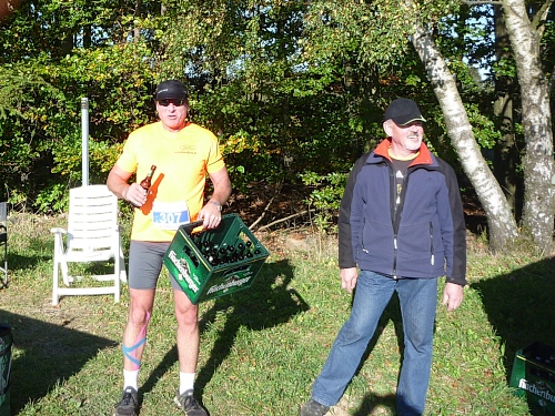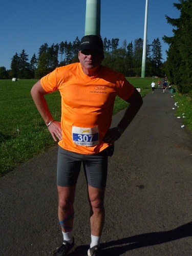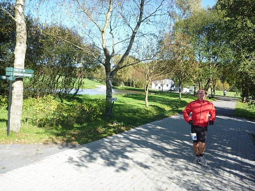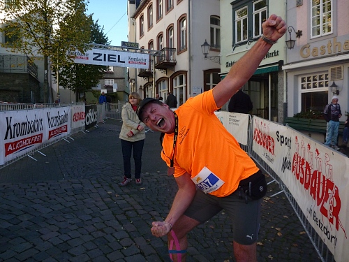 Dann geht es zurück ins TeleTubbieLand und ein anderer Halbmarathonläufer legt sich unfreiwillig schlafend wenige Meter vor dem rettenden Kasten Hachenburger ab.