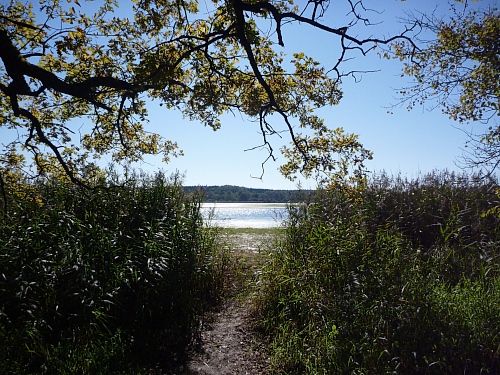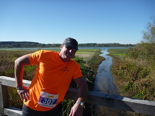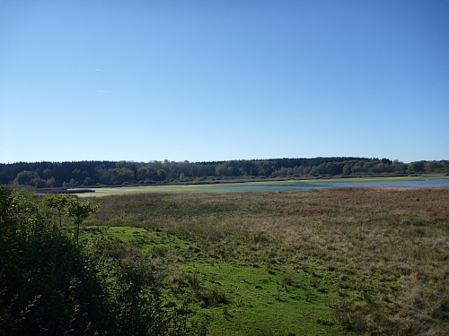 Als ich am See die Aussichtsplattform besteige, fühle ich mich wie in Afrika, im Etosha-Nationalpark, Löwen fehlen ja nicht. Weite Sicht über dieses grandiose Feuchtgebiet mit weissen Reihern und zahllosen Gänsen und Kranichen. Es riecht ein wenig nach Feuchtgebiet, aber das ist ja auch sehr anregend und die Umrundung desselben auch. Passend dazu sind die Verpflegungsstationen mit optimalen isotonischen Getränken ausgestattet.