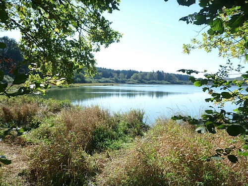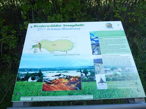 Dreifelder Naturschutzgebiet - die Westerwälder Seenplatte besteht aus sieben Weihern. Um die durch den Dreißigjährigen Krieg (31 Truppen-Einquartierungen) arg gebeutelte Landbevölkerung besser ernähren zu können, ließ der Graf von Wied rund um sein Jagdgut Seeburg die Weiher aufstauen und mit Fischen besetzen. In einem der Weiher soll die Raubritterburg Rohrbuch liegen, die bei einem Zechgelage der Raubritter 1618 spurlos im Moor versunken sei. Da frage ich mich, wenn sogar der Burgname bekannt ist, warum man da nicht mal im Morast danach wühlt und einen Nationalpark einrichtet.