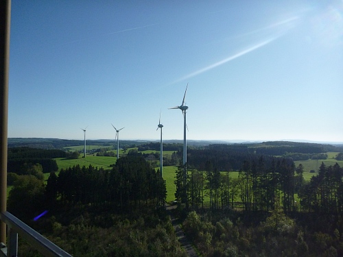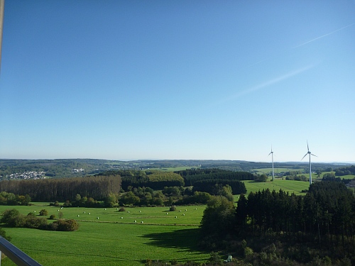 Linker Hand Lochum, dahinter der Tertiär-und Industriepark Stöffel. Hier wurde Basalt abgebaut, in den Basaltschichten ist die Ablagerung eines Maarsees enthalten. Hier wurde die „Stöffelmaus“ gefunden, eine 25 Millionen Jahre alte Flugmaus, sowie 20.000 weitere Funde aus dem Tertiär. Sehr empfehlenswert für Marathonbegleitung!