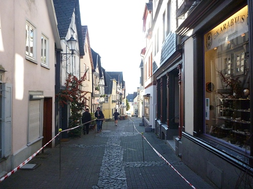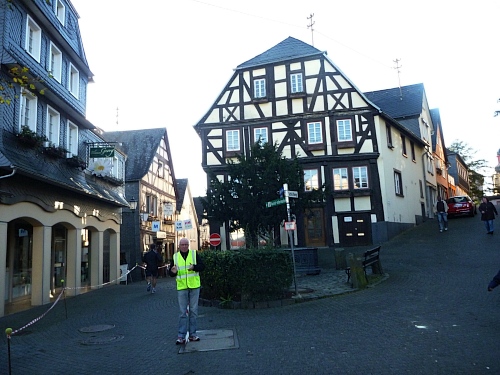 Hier im Westerwald trinken die Männer nach der Arbeit ihren „Sechsourens“, den „Sechsuhrschnaps“. Jedenfalls war es annähernd 6 Uhr, als ich aus den Kellern der Krone herausgekrochen kam und das Feuerwehrauto des Karusells bestieg. Übrigens eignet sich das Echo der Fachwerkkulisse Hachenburgs sehr gut für das Zitat von Luise: „Mann, Mann, Mann, ist das schön hier!“