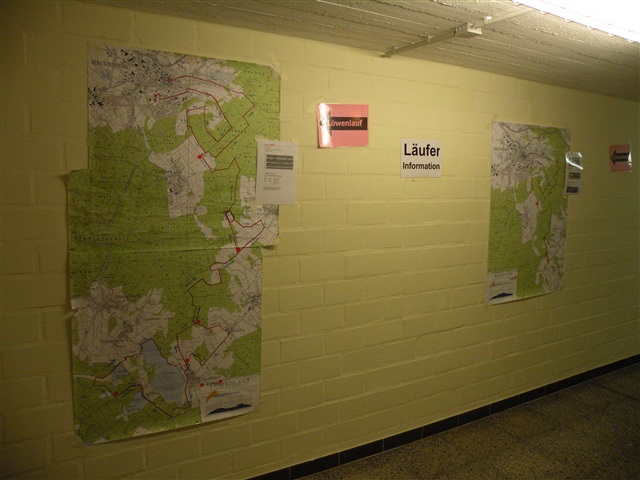 Am nächsten Morgen bildet die Rundsporthalle mit ihren günstigen logistischen Möglichkeiten die Kulisse für den Start, der läuferfreundlich um 11.30 Uhr (Marathon) erfolgt. Dank dieser späten Startzeit konnte ich noch gemütlich mit der Familie frühstücken, die samstäglichen Aufträge verteilen und mich anschließend mehr oder weniger unauffällig zum Laufen verdrücken. Frisch geduscht werde ich dann am Abend die Ausführung kontrollieren können. Wieder einmal habe ich mein schweres Schicksal zu beklagen… Wer mir das so nicht ganz abnimmt, liegt durchaus richtig, denn es gibt schon Gegenwind von der Gattin. Aber das Leben ist ein Geben und Nehmen, so finden wir einen Ausgleich, mit dem beide leben können.