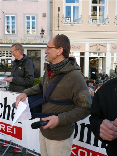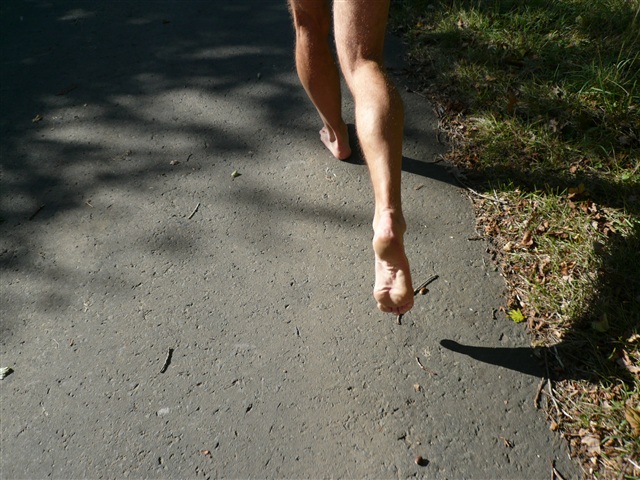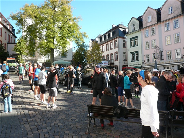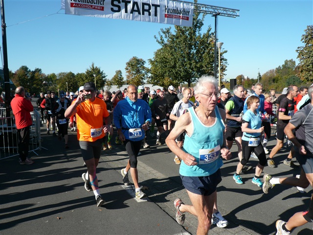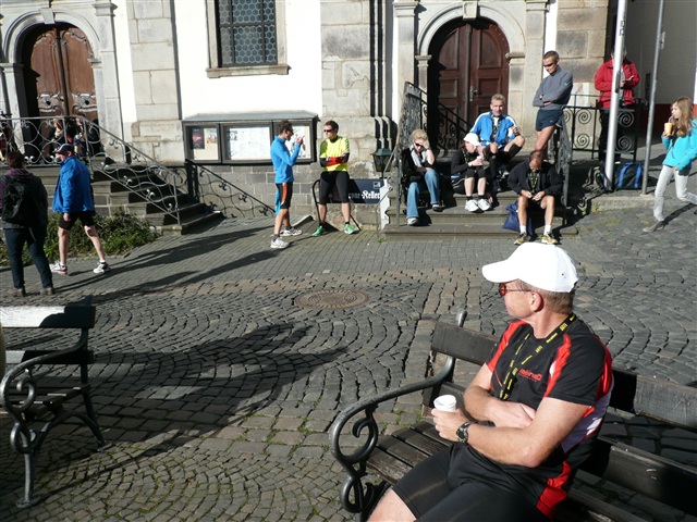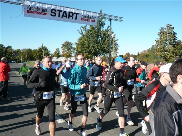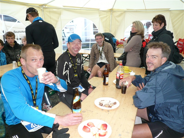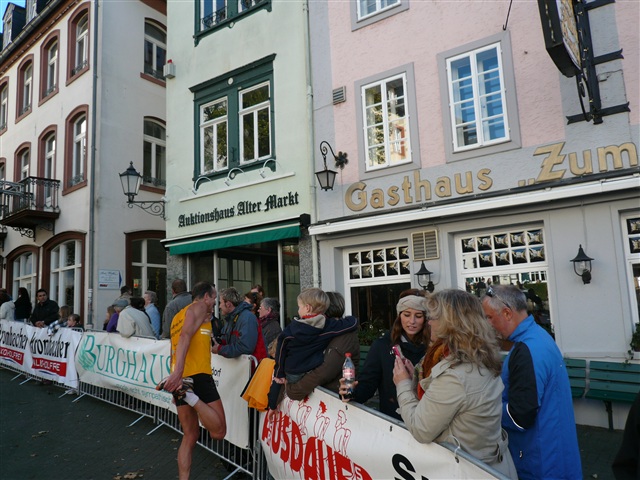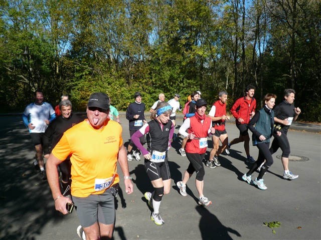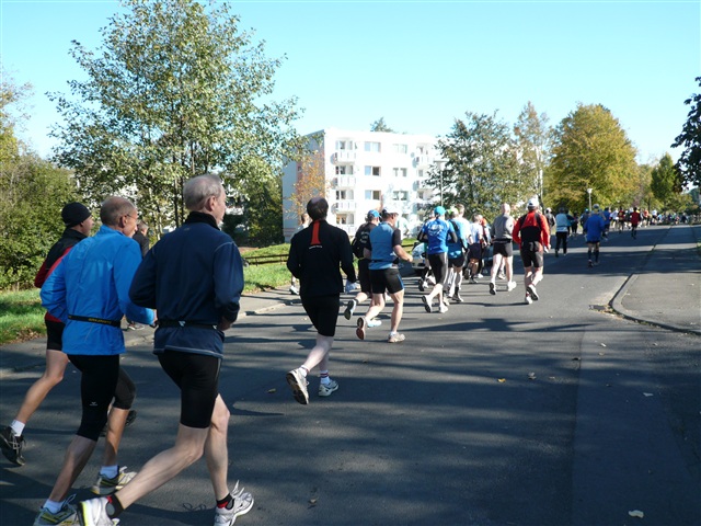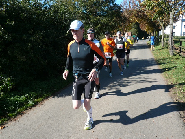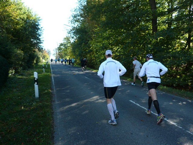 Die ständig wechselnden Untergründe sind immer gut zu belaufen, es sei denn, ja, es sei denn, man heißt Dietmar (nicht Mücke), eifert dem Dietmar (Mücke) nach und bestreitet seinen ersten Marathon barfuß. Natürlich wird der gebürtige Nürnberger direkt interviewt und nach seinen Erfahrungen befragt, schließlich schätze auch ich den wenig bis unbeschuhten Lauf ebenfalls sehr, bin aber nicht so mutig. Seine FiveFingers hält er in den Händen und zieht diese über, wenn es zu übel wird. Mit den Schuhen an den Füßen enteilt er im Sauseschritt, ist er barfuß, hole ich ihn wieder ein.