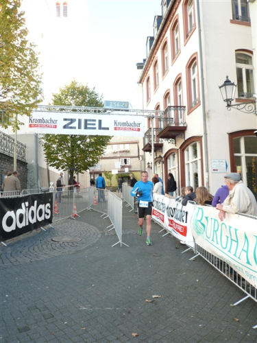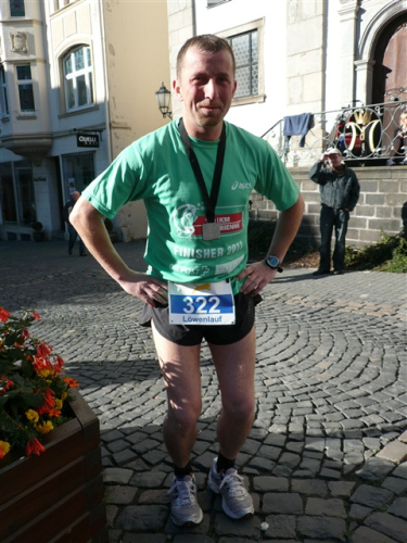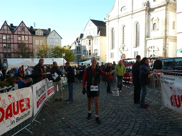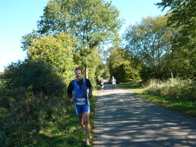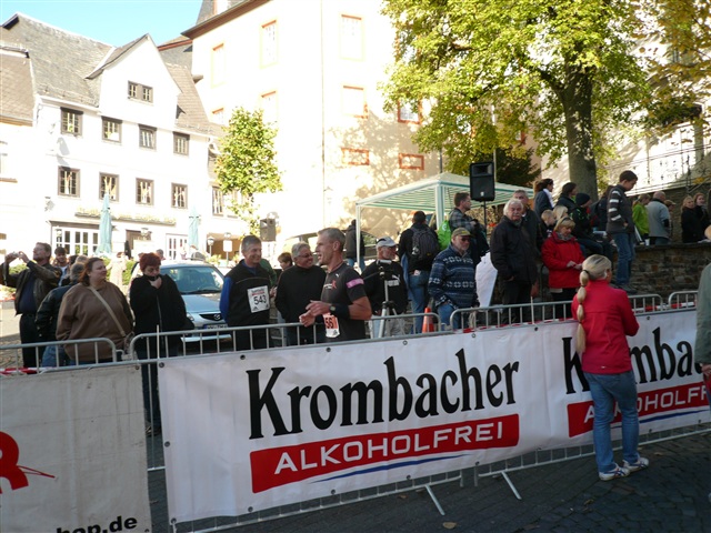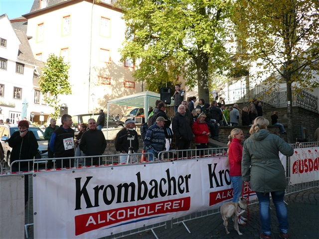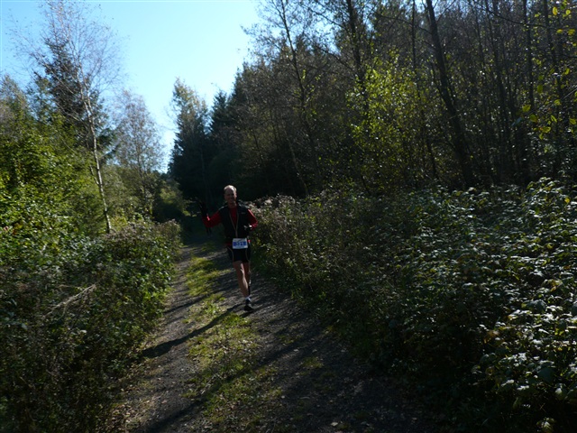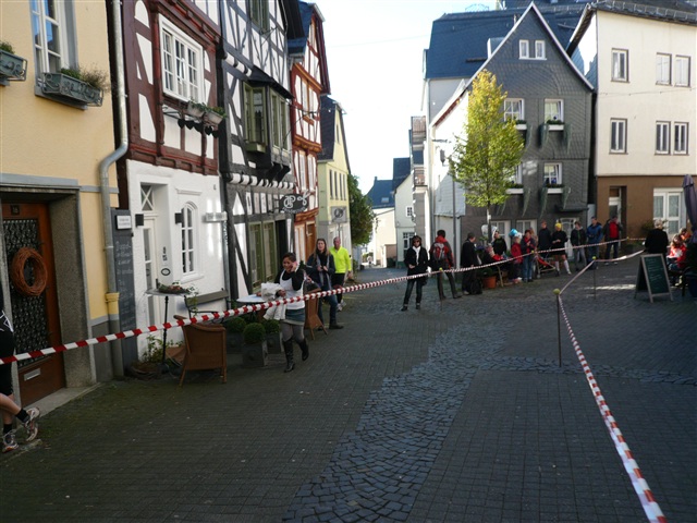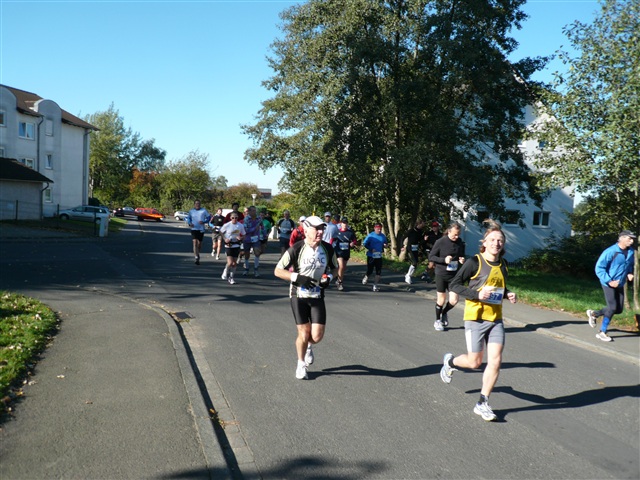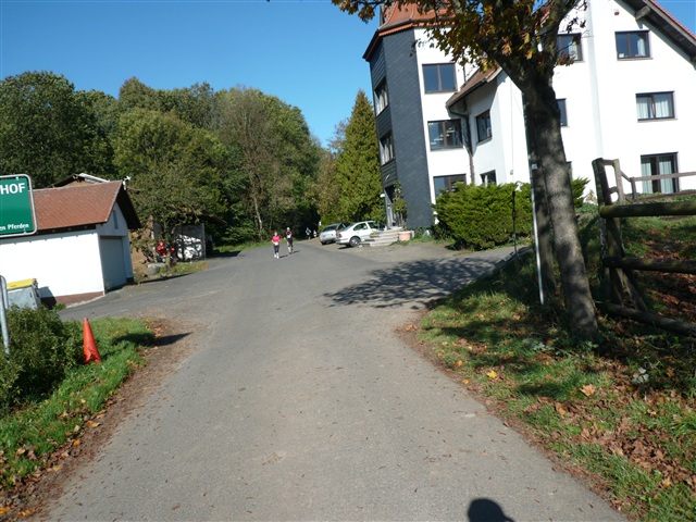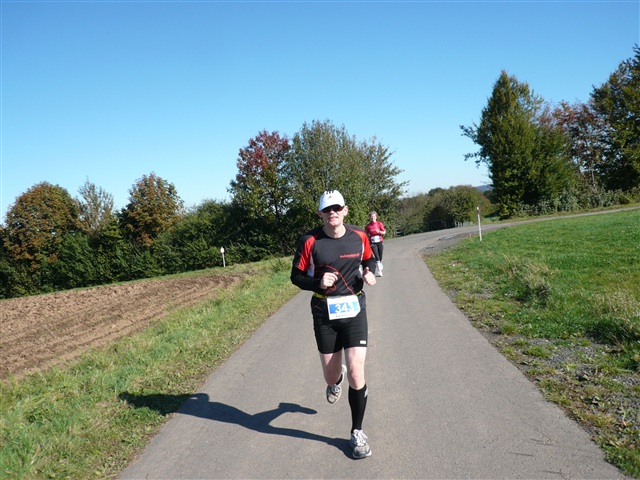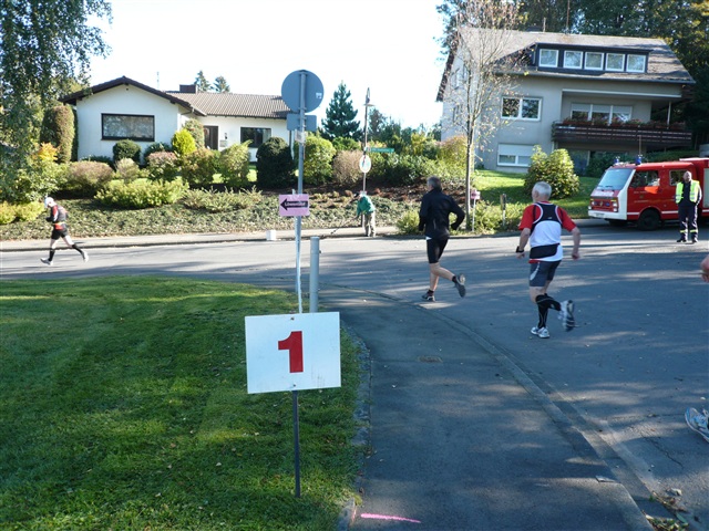 Danach gilt es im weiteren Verlauf, wieder an Höhe zu gewinnen. Wobei bis auf die flache Seerunde eigentlich ständige Wechsel zwischen Auf und Ab stattfinden. So kommen natürlich doch etliche Höhenmeter, insgesamt 455, zusammen, wobei die Einzelsteigungen völlig harmlos sind. Natürlich nur dann, wenn Du etwas drauf hast. Ab gut der Hälfte laufe ich den Rest mit Stefan aus dem Bergischen zusammen, wir haben uns viel von vergangenen und zukünftigen Heldentaten zu erzählen und so ist der weitere Verlauf äußerst kurzweilig und lenkt vom völlig fehlenden Zuschauerzuspruch unterwegs ab. Danke, Stefan, und alles Gute beim Röntgenlauf!