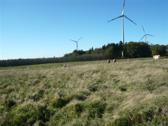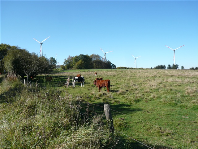 Am Campingplatz vorbei begleitet uns wieder das vertraute Bild: Windräder und Kühe, die jede Menge laufender Rindviecher als Artgenossen erkennen. Der Feuerwehr wird der Wäller (Westerwälder) Schlachtruf „Hui Wäller!“ entboten, das „Allemol!“ folgt auf dem Fuße.