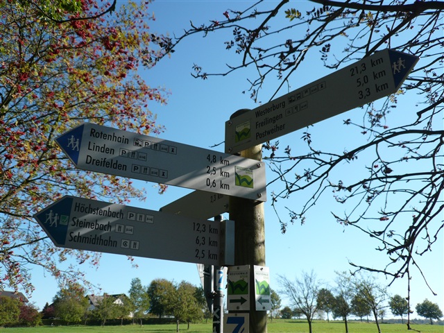 Um die insgesamt sieben Seen der Westerwälder Seenplatte verläuft der 36 km lange „7-Weiher-Weg“, der auch an den Aussichtstürmen Helleberg bei Freilingen und Gräbersberg bei Alpenrod vorbeiführt, wir belaufen ihn über etliche Zeit. Ausgangspunkt ist der Parkplatz am großen Waldspielplatz Steinen, an dem die Errichtung eines interessanten Natur- und Informationszentrums geplant ist. Nur ein paar Meter sind es zur bereits erwähnten Wiedbachquelle in der Nähe der Gemeinde Linden. Ich glaube, hierhin muß ich mal zu einem „Langen“ zurückkehren. Oder wie wäre es mit einem „Sieben-Weiher-Marathon“, Sabine? Ruf‘ – mich – an! Die fehlenden 6 km müßten doch auch noch irgendwie zusammenzubekommen sein.