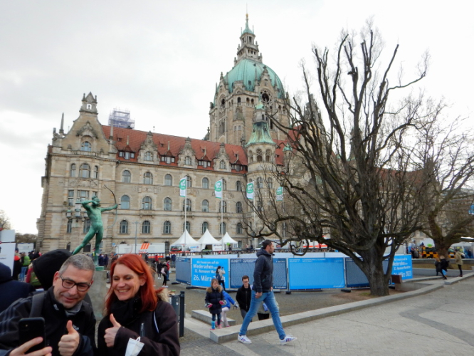 Nun stehe ich als aus der Nähe von Zürich angereister Berner am Trammplatz beim Neuen Rathaus in Hannover. Mein Auftrag ist es, ein Bild in Form von Fotos und einem Laufbericht über den Marathon in Niedersachsens Landeshauptstadt zu machen.