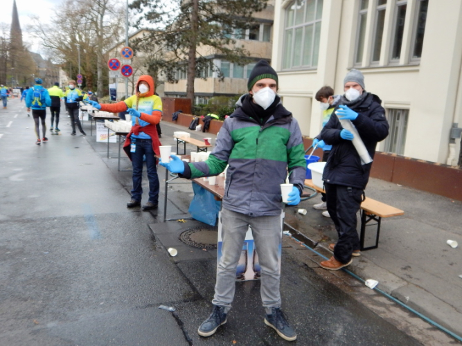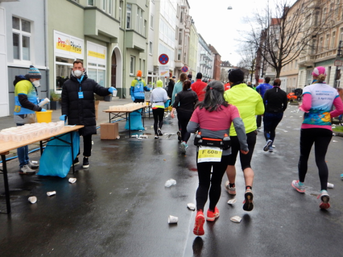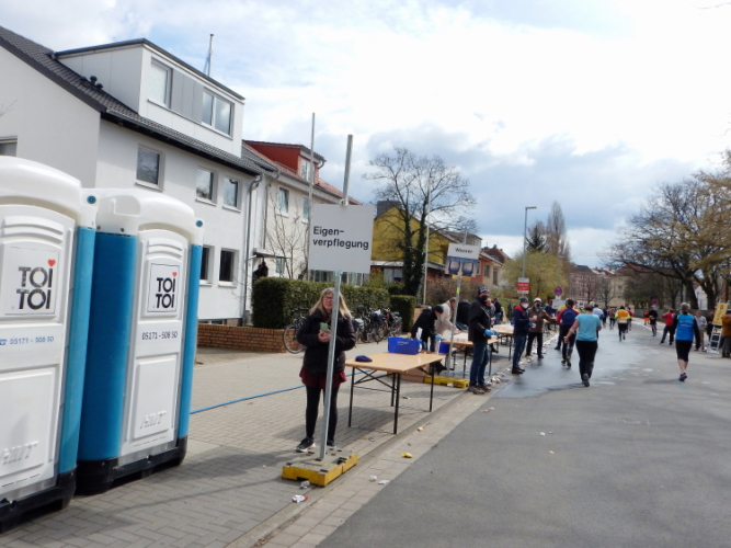 Mein Augenmerk gilt vielmehr der Szenerie mit all den erwartungsvoll auf ihre Teamkollegen wartenden Staffelläufern und der gleich nach der Unterquerung der Bahngleise folgenden weiteren Verpflegungsstation. Ich kann es kaum glauben, dass bereits 15 Kilometer hinter mir liegen.