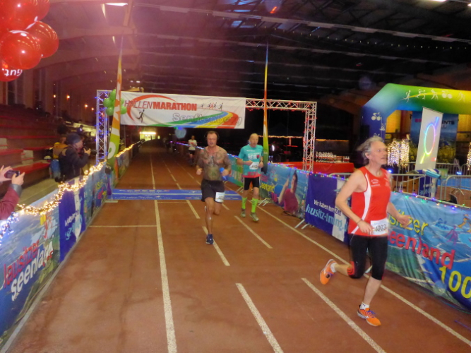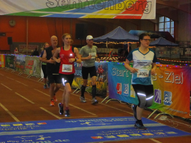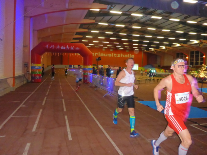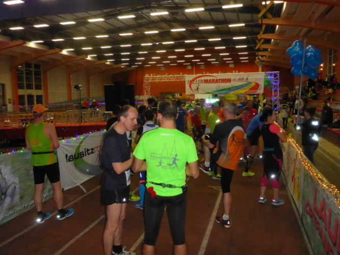 Der TSV Seftenberg organisiert hier eine tolle Veranstaltung, die meines Erachtens ausgebucht sein müsste. Wo bekommt man schon Ende Januar einen garantiert trockenen und warmen Lauf? O.k., Rundendrehen ist schon gewöhnungsbedürftig, aber dafür gibt es 169 Versorgungsmöglichkeiten an einem reichhaltigen Buffet. Und dabei sei auch noch erwähnt: Jede Schüssel war immer voll! Ein unendliches Dankeschön an alle unermüdlichen Helfer! Vor allen an den netten Herrn, dem ich sein Red Bull vom Verpflegungstisch geklaut habe. Für mich war es garantiert nicht der letzte Lauf in der legendären Niederlausitzhalle!