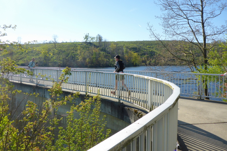 Nun geht es hinab zur Zillerbachtalsperre und über die Staumauer. Herrlich! Auf der anderen Seite folgt ein kurzer, steiler Trail.