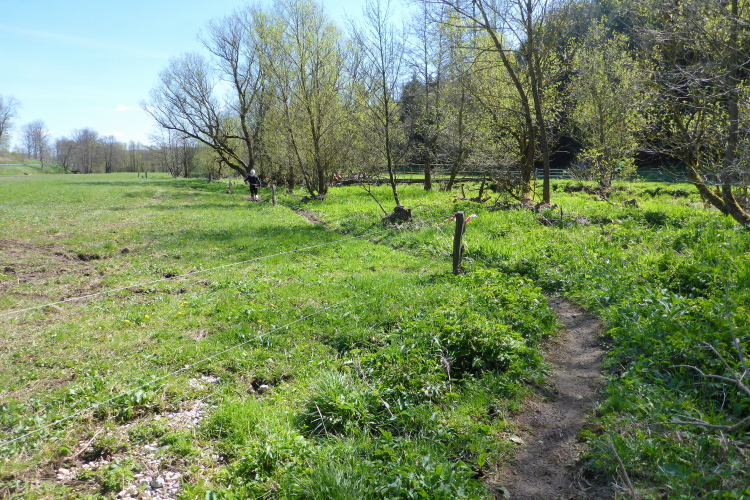 Trotz dem vielen Regen im April sind heute überraschend wenige Stellen schlammig. Vor und nach der Überquerung des Baches muss man etwas aufpassen.