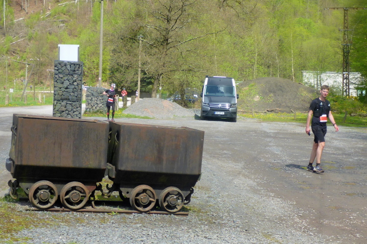 Die Startplätze sind seit Tagen ausgebucht, darunter sind 592 Läufer der Ultradistanz. Da der Start für die 53 km und für die 25 km erst um 8.30 Uhr ist, bleibt genug Zeit zum Frühstücken. Die 30 km Läufer starten später auf der zweiten Hälfte der Ultrastrecke. Ich will die lange Distanz mit 1070 hm Auf- und 1170 hm Abstieg laufen, Annette die erste Hälfte. Eine Viertelstunde brauchen wir von unserer Pension nahe Marktplatz bis zum direkt am Waldrand liegenden Startgelände. Auch hier ist alles auf das Wesentliche beschränkt. Ein paar Toilettenhäuschen, zwei verschiedene Stapel für die DropBags, ein Startbanner, sonst nichts. Die Atmosphäre ist entspannt wie bei einem gemütlichen Ausflug mit Freunden.