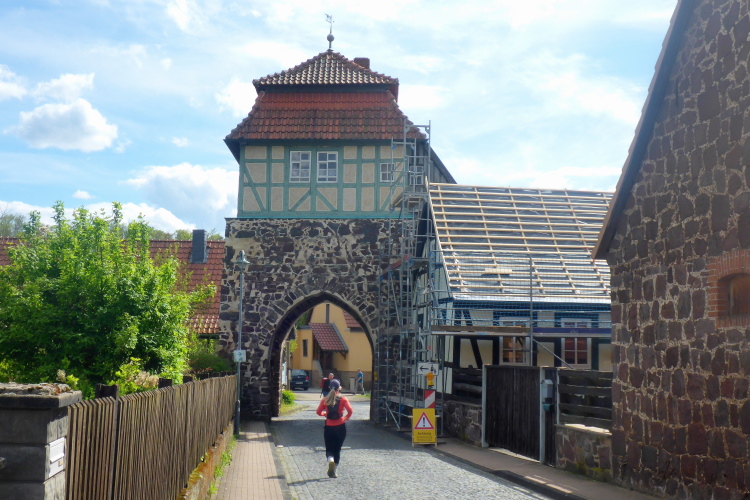 Noch einmal geht es kurz durch den Wald, dann sehe ich den Sportplatz am Ortsrand von Nordhausen vor mir. 20 Minuten vor Zielschluss laufe ich glücklich und zufrieden durch den Zielkanal. Annette kam vor einigen Stunden auf der 25 Stunden Strecke eine Stunde vor Zielschluss an.