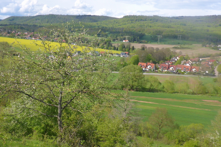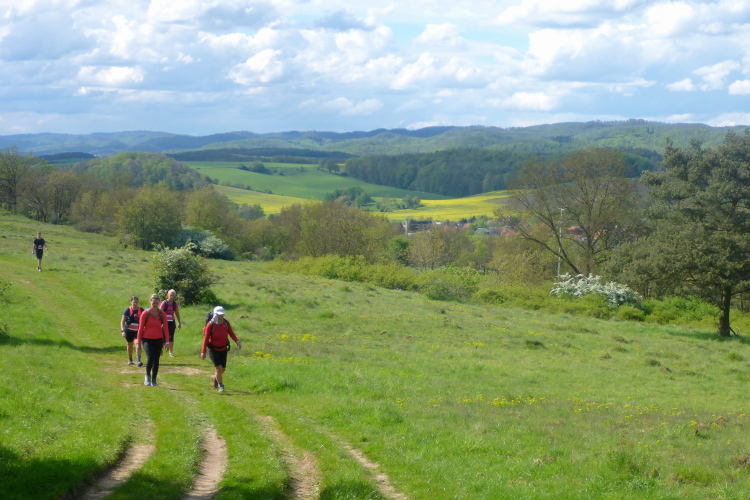 Ich durchquere Neustadt/Harz und erreiche VP 4. Zu meiner großen Begeisterung gibt es hier sogar Brot mit Bärlauch-Aufstrich und Nutellabrot. Ich greife bei beidem zu. Nun zeigt sich der Harz von einer ganz anderen Seite als am Vormittag. Ich laufe durch eine liebliche Landschaft mit Streuobstwiesen und weiter Aussicht. Wer Abwechslung sucht, ist bei der Harzquerung am rechten Fleck!