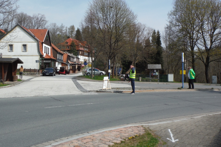 Anschließend wartet die nächste Steigung. Laut Streckenprofil zwar recht unbedeutend, aber mit den müden Beinen doch eine Herausforderung. Wanderer der Harzquerung mischen sich unter die Läufer. Die Veranstaltung bewegt immerhin 1.200 Teilnehmer am heutigen Tag. Unser Tempo gleicht sich auf diesem Stück dem der Wanderer an. Dennoch erreichen wird zügig die nächste Anhöhe.