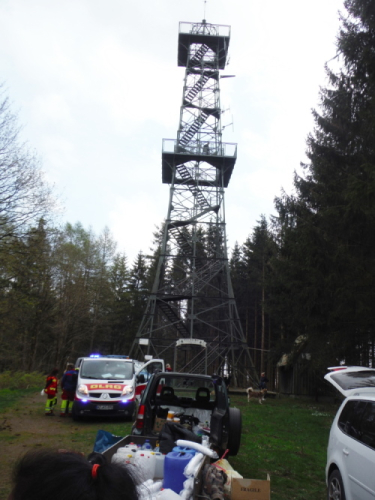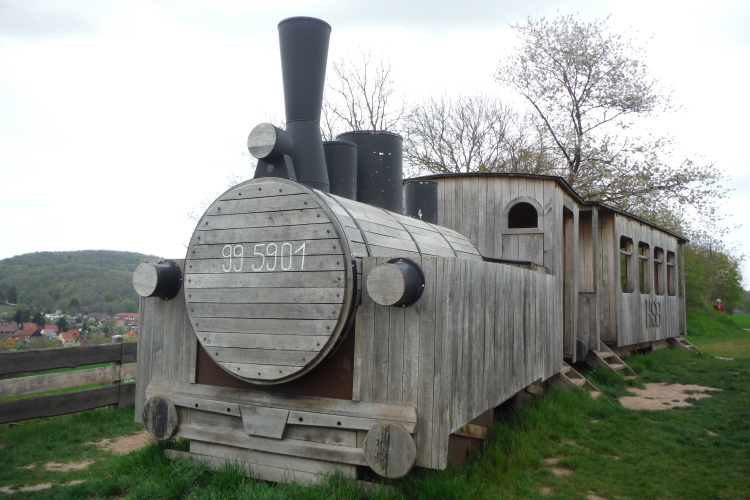 An einem kleinen Teich verlasse ich den Ort. Die Sonne strahlt vom Himmel, während ich hinunter zur Bere laufe. Über den Fluss führt die Strecke nach rechts durch das Tal, entlang der Harzquerbahn bis zum Rabensteiner Stollen. Eine alte Grubenbahn erinnert an Steinkohleabbau, der hier stattgefunden hat. Statt des Abstieges in den Stollen wartet der steilste Anstieg der Strecke mit 270 Höhenmeter hinauf zum Poppenberg. Keine leichte Herausforderung nach 36 KM. Die Beine sind schon etwas schwer. Ich bin froh, diese Herausforderung nicht alleine meistern zu müssen, denn ab hier bin ich bis ins Ziel mit Karin unterwegs. Auch wenn sie mir bergauf noch ein paarmal entwischt, kann ich bergab immer wieder aufschließen. Im gemeinsamen Laufen spornen wir uns gegenseitig an. Nach 41,3 KM ist mit dem Poppenberg der höchste Punkt des Tages erreicht. Den dazugehörigen Aussichtsturm erklimme ich nicht, sondern stärke mich lieber noch einmal für die finalen Kilometer. Viele Steigungen soll es nicht mehr geben. Also einfach rollen lassen. Denke ich zumindest.