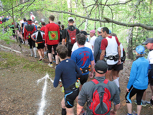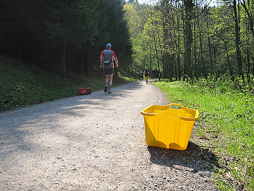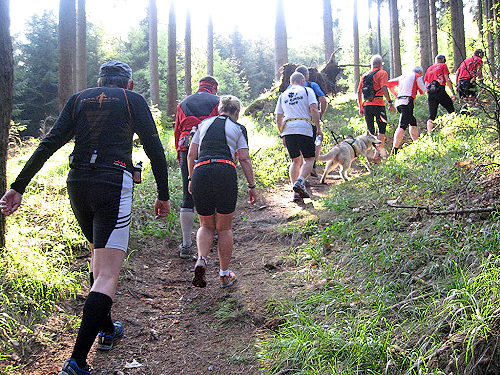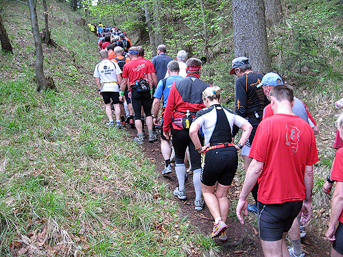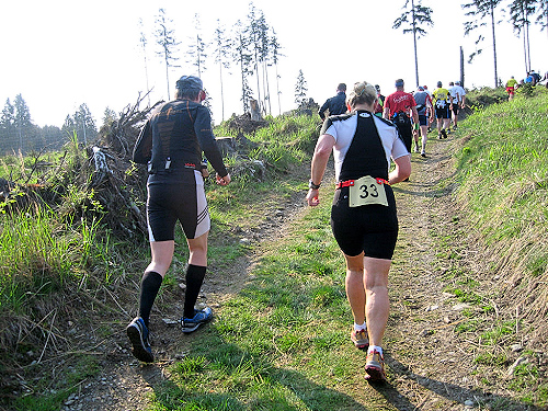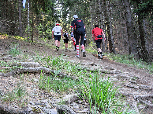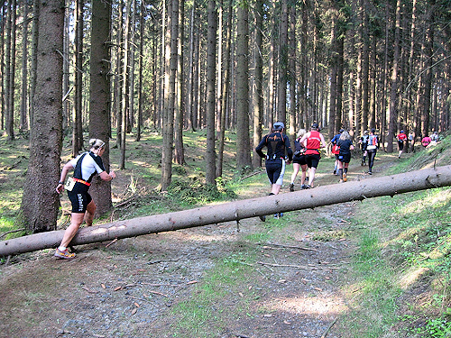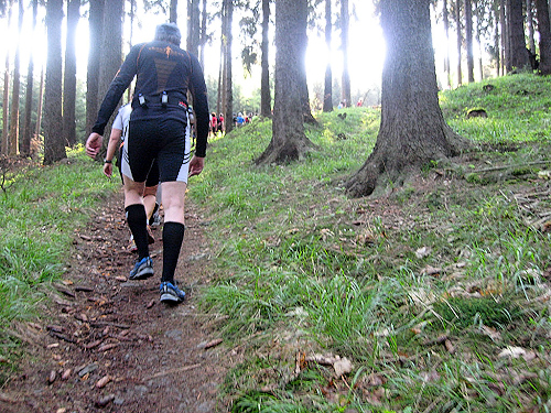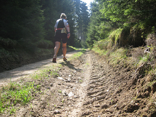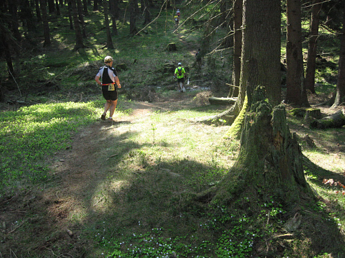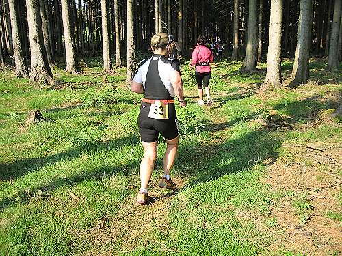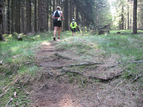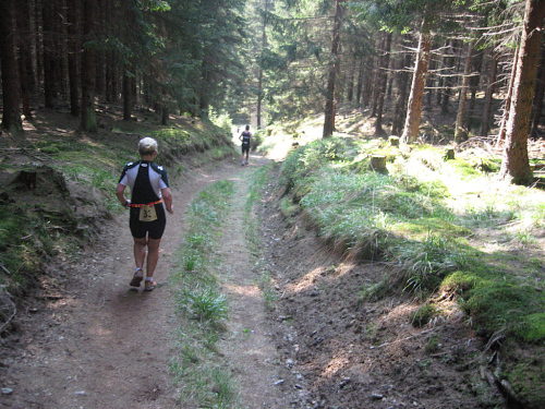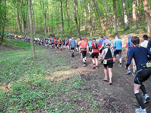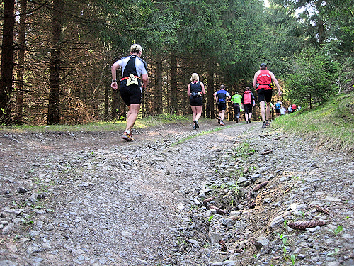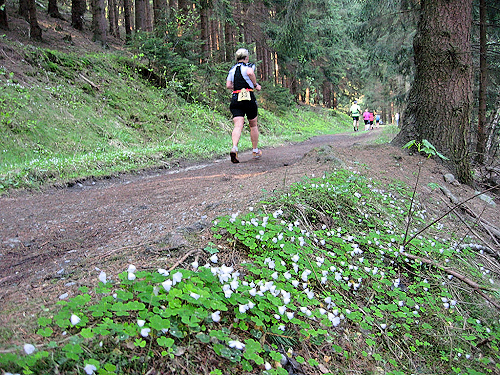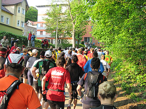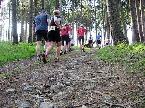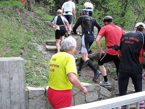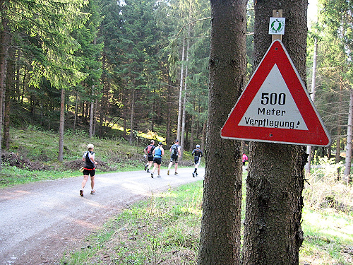 Immer wieder mal überholt man einzelne Wanderer, die man nicht nur an der Startnummer, sondern auch an den schweren Rucksäcken erkennen kann. Die Wanderer sind bereits seit 5:00 Uhr auf der Strecke und ich frage mich, ob es wohl angenehmer wäre zu wandern statt zu laufen? Aber dann höre ich, wie sich einer über seine schmerzenden Füße beklagt und ich denke: Also doch keine Alternative.