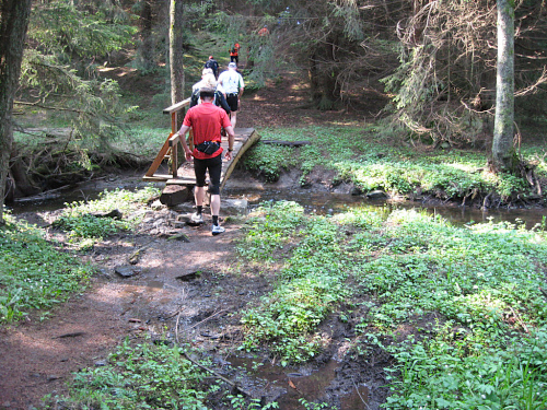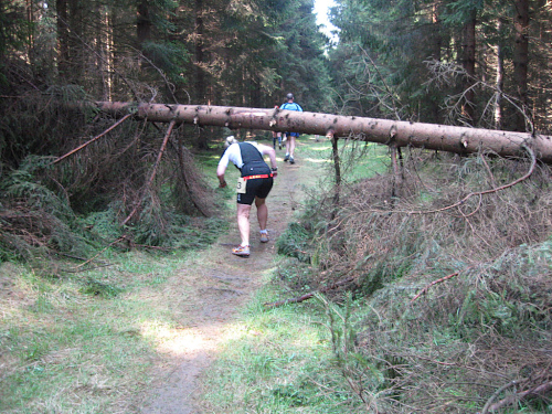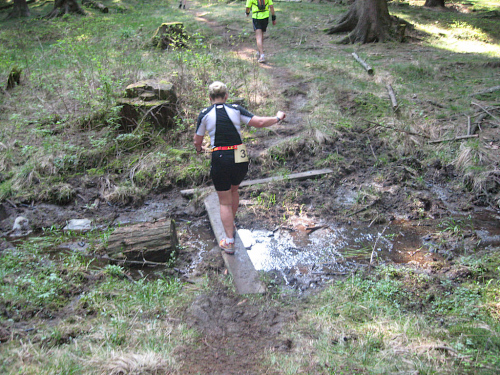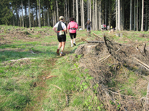 Breite, befahrbare Wege gibt es so gut wie keine. Meist läuft man auf kleinen, wunderschönen Pfaden. So kann man die Landschaft des Harzes tatsächlich, wie beschrieben, in seiner Ursprünglichkeit genießen. Ich meine sogar, Wildschweine gehört zu haben. Es fällt auf, dass kaum ein Läufer mit Ohrstöpseln unterwegs ist.