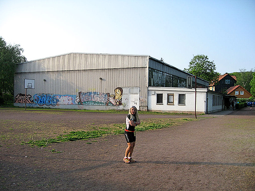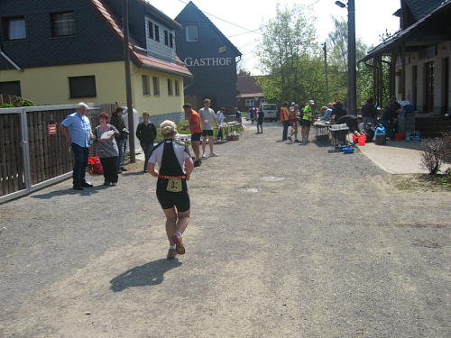 Es pfeift und dampft, Geräusche aus vergangenen Tagen. Gegenüber der Turnhalle ist der Bahnhof Westerntor und Standort der bekannten Harzer Schmalspurbahn. Diese Bahn würde uns mit 25km/h bequem an den Zielbereich nach Nordhausen bringen, wir bräuchten statt unserer Startnummer nur eine Fahrkarte. Die Sonne läßt sich schon ganz früh blicken und die Vorfreude auf die bevorstehenden 51 km wird immer größer.