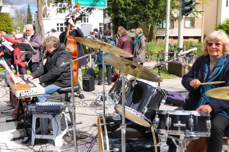 Natürlich gibt es trotz fortgeschrittener Stunde an vielen Stellen Musikgruppen und Kapellen. Ich bewundere die Ausdauer, mit der hier agiert wird. Abgesehen von den Kochtöpfen und Ratschen, die viele der Fans malträtieren, wird hier oft richtig gute Musik gemacht. Nichts gegen ein aufgedrehtes Radio, das auch seinen Zweck erfüllt. Aber handgemacht ist halt handgemacht. Gerade die vielen Percussionsgruppen sind perfekt für flüssiges Laufen.