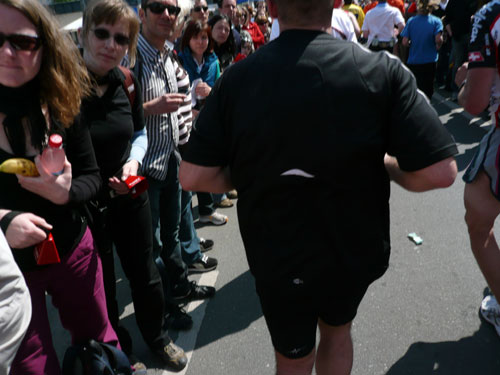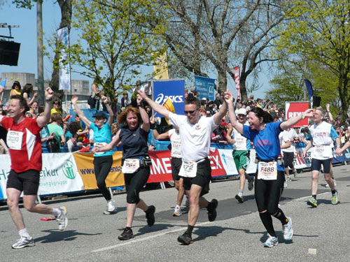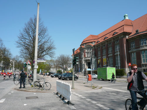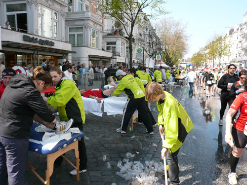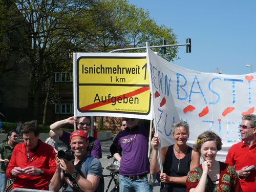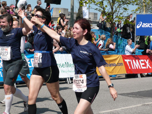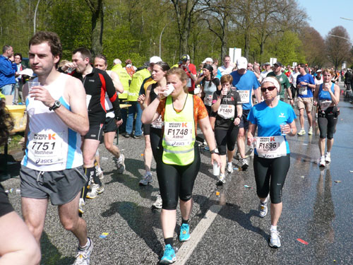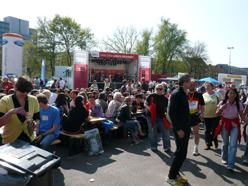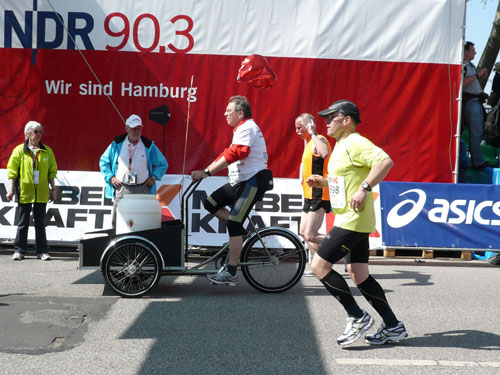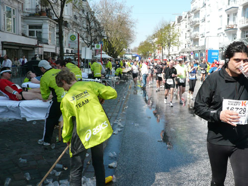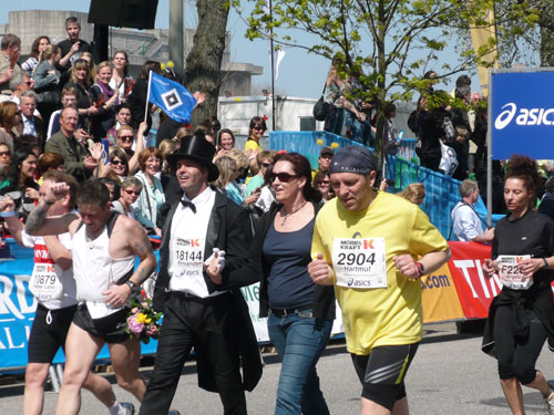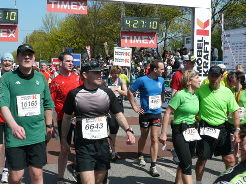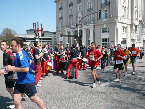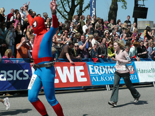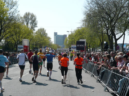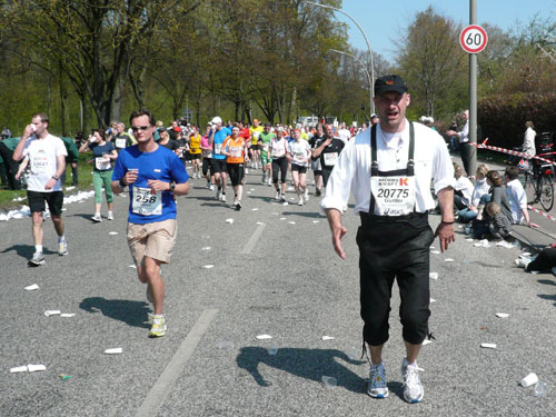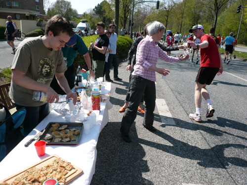 Gestern bildeten 100.000 Menschen bei der Anti-Atomkraft-Demo eine 120 Kilometer lange Kette zwischen den abgeschalteten Atomkraftwerken Brunsbüttel und Krümmel mit Schwerpunkt Hamburg. Wenn sich heute alle an den Händen fassen würden, könnte man wahrscheinlich einen zig-fachen Ring um die komplette Marathonstrecke legen. Bei allen Problemen des Veranstalters, die Menschen aus Hamburg und Umgebung lieben ihren Marathon, das kann man uneingeschränkt behaupten.