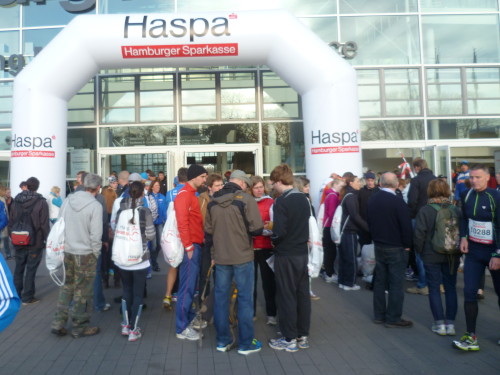 Die Ausgabe der Startunterlagen war erstaunlich reibungslos. An der Startnummer sind diverse Gutscheine z. B. für die Startertasche befestigt. Auf die Abholung des Armbandes mit den eigenen Durchgangszeiten verzichten wir. Die dafür benötigte Wartezeit von einer dreiviertel Stunde nutzen wir lieber für einen Bummel über die Läufermesse "Endurance 13".