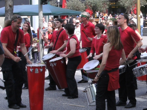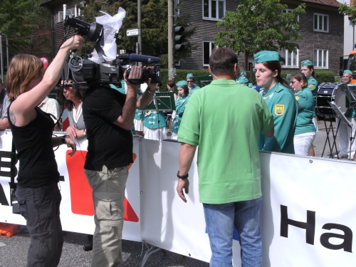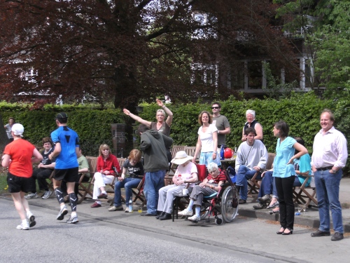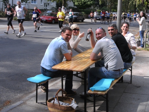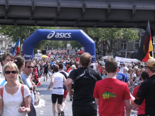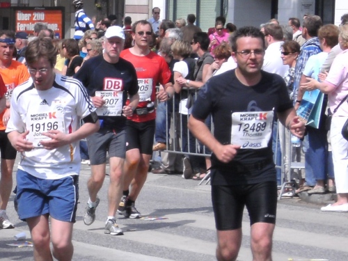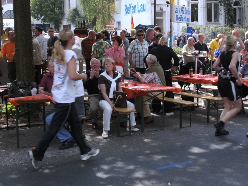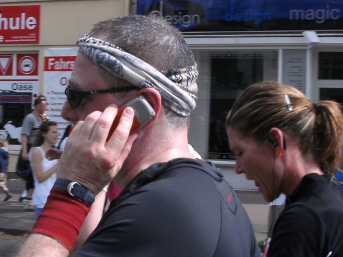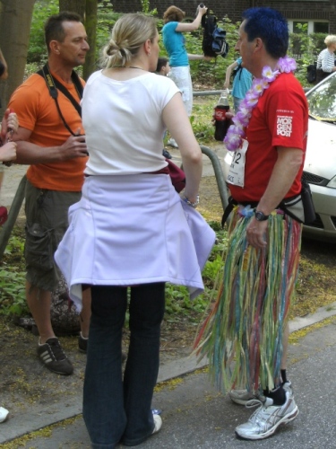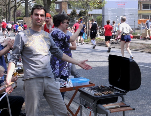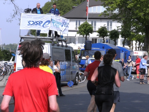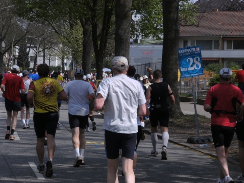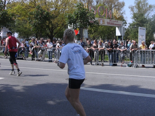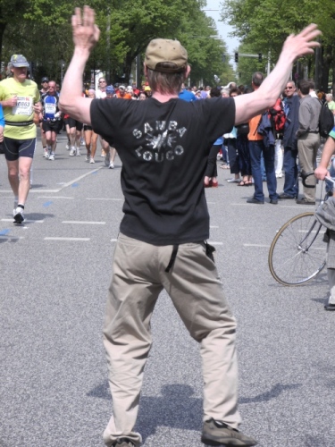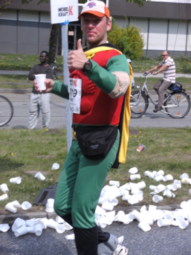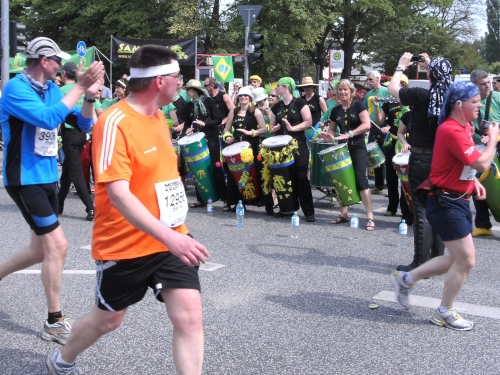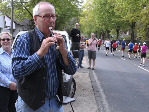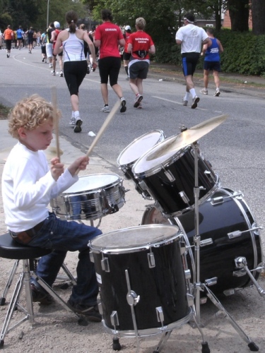 Statt Udo höre und sehe ich andere Musiker an der Strecke. Einige Musikgruppen spielen und heizen den Läufern und Zuschauern ein. Ein netter Flötenspieler begleitet die Läufer mit den Klängen seiner Flöte und ein Junge gibt auf seinem Schlagzeug alles und „trommelt“ die Läufer an.