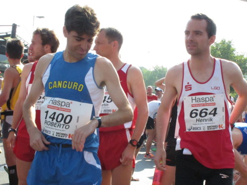 Für die ca. 800 Läuferinnen und Läufer im Block dahinter geht es um den ehrenvollen Titel „Deutscher Marathonmeister“. Die vermeintlich schnellsten nationalen Marathon-Heros starteten allerdings vor ein paar Wochen in Düsseldorf. Dort gibt es Euros statt Meisterehren.