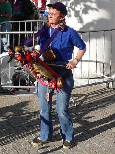 Als ich vor dem Rathaus eintreffe, sind die Aufbauarbeiten noch voll im Gange. Außer mir suchen weitere Läufer nach einem Platz zum Sitzen, nach Kaffee und vielleicht einem zweiten Frühstück. Die zahlreichen Cafés und Kneipen sind alle geschlossen. Da haben die sonst als sehr geschäftstüchtig geltenden Schwaben etwas verpasst. Gestern Abend war da schon mehr los. Einige Gaststätten hatten Nudelbuffets im Angebot. Ich war gleich in der Nähe im Mohren, hab etwas Fußball auf der Riesenleinwand gekuckt und mir die verschiedenen Nudelgerichte für sage und schreibe 3 Euro schmecken lassen.
