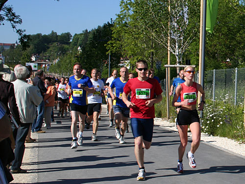 Ein paar enge Kurven und wir sind wieder in der Grabenstraße zum „zweiten Zieleinlauf.“ Fast kommt es mir vor, dass jetzt noch mehr Leute den Platz vor dem Rathaus füllen. Der Lärm ist ohrenbetäubend, das Publikum ist begeistert. Ich bin es auch und laufe noch eine Runde.