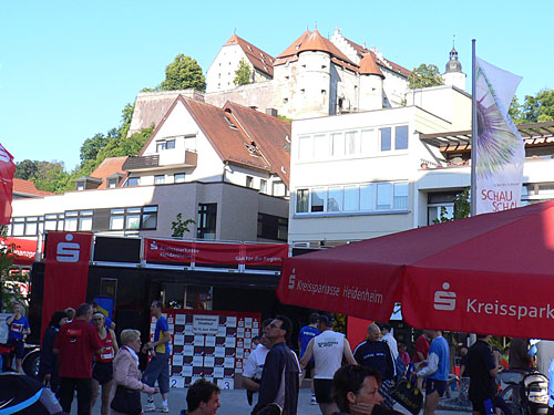 Heidenheim liegt mit seinen ungefähr 50.000 Einwohnern am nordöstlichen Zipfel der Schwäbischen Alb, die wegen ihres rauen Klimas, aber auch wegen ihrer landschaftlichen Schönheit bekannt ist. Das raue Klima bekomme ich am Sonntag in der Früh zu spüren, als ich von meinem Quartier 20 km außerhalb nach Heidenheim aufbreche. 6,5 Grad zeigt das Thermometer an. Aber die Sonne scheint vom wolkenlosen Himmel. Zusammen ergeben das ideale Bedingungen für einen langen Lauf.