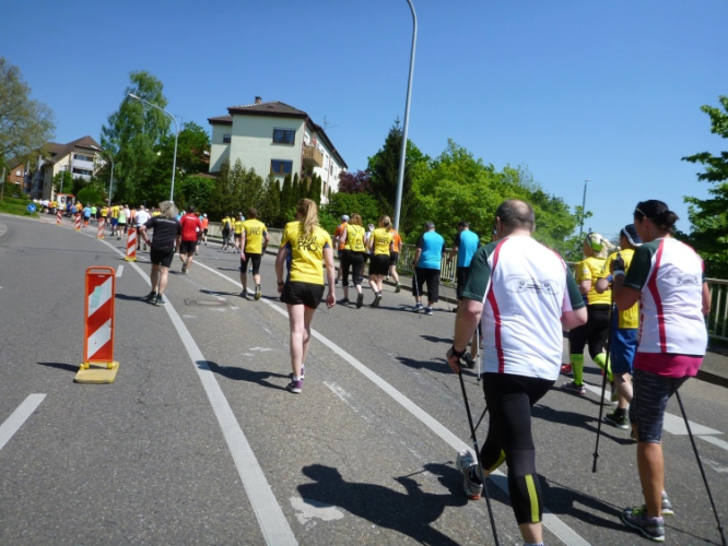 In Böckingen, keine drei Kilometer mehr zum Finish, heizt uns die Gundelsheimer Guggemusik ein. Recht schräg, aber es sorgt für Stimmung, auch wenn man fast glauben mag, die können gar nicht spielen. Der 40. Kilometer: „Vom Ziel träumt man nicht, sondern erreicht es“, heißt es auf dem Schild. Aufgeben ist jetzt ein No-Go.