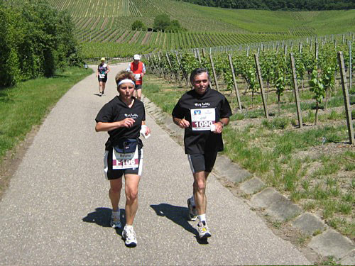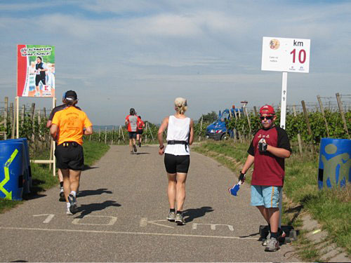 Allerdings verschiebt sich offensichtlich das Interesse der Teilnehmer vom Marathon zum Halben. Kontinuierlich sanken die Teilnehmerzahlen beim Marathon von über 1.100 bei der Premiere auf unter 600 in diesem Jahr. Entsprechend aber stiegen die Halbmarathonzahlen, so dass die Teilnehmerzahl insgesamt stabil blieb, verglichen mit dem Vorjahr. Woran liegt es? Strecke zu schwer? Klar, wer gute Zeiten laufen will, kann das in Heilbronn nicht. Dafür aber hat er einen Landschaftsmarathon mit ganz eigenem Charakter. Wo sonst kommt man durch acht Weinorte mit Trubel, Jubel und Festen, um dann jeweils wieder in die Landschaft einzutauchen, mit Ruhe und schönen Ausblicken?