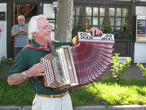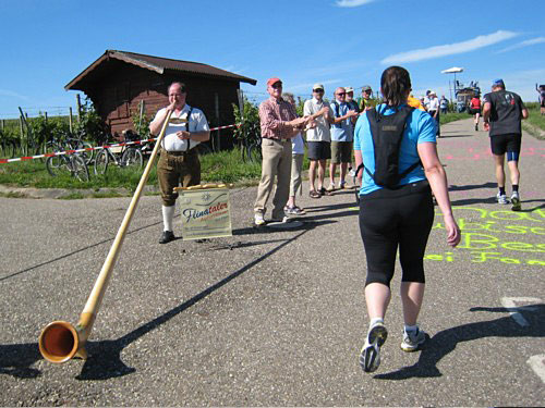 Auf der Höhe war dann Kilometer zehn erreicht und als es hinunter nach Talheim ging, hatte man das erste Mal einen weiten Blick über die Landschaft vor uns. Locker lief ich hinunter, hinein in den Ort, wo natürlich ebenfalls gefeiert wurde. Musik machte hier eine Band, die Beatles-Lieder spielte. Beschwingt lief ich vorbei und durch den Ort.