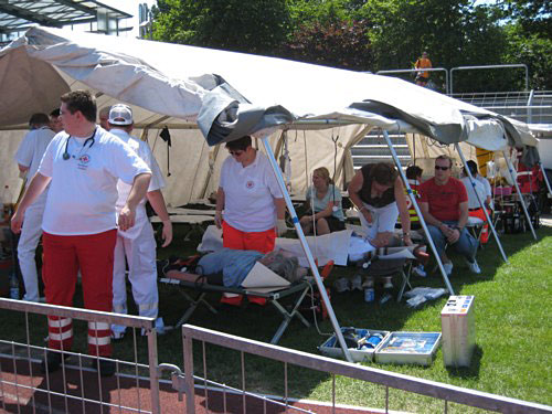 Die Nachfrage bei den Sanitätern im Ziel ergab dann, dass man heute viele Läuferinnen und Läufer versorgen musste, aber auch Zuschauern musste man helfen. In den Sanitätszelten im Stadion sah ich dann auch einige Läufer am Tropf hängen. Zu wenig getrunken, weiter gerannt und das war dann das Ende vom Lied. Der Sanitäter erwähnte noch, dass der Großteil der Hilfsbedürftigen Männer waren.