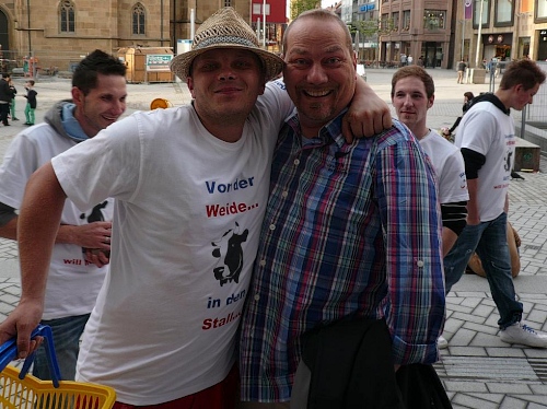 Gerade ein paar Meter entfernt findet auf einem Schiff die Nudelparty statt. Zwei, drei Sorten Nudeln mit der gleichen Anzahl von Saucen wird angeboten. Wer sich da nicht angemeldet hat, für fünf EUR gibt es Happa-Happa und ein Getränk. Beim Preis sparen da die Schwaben.