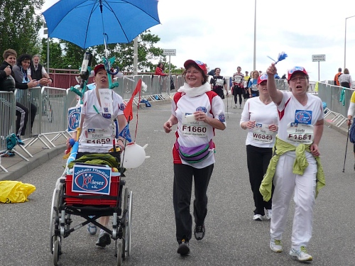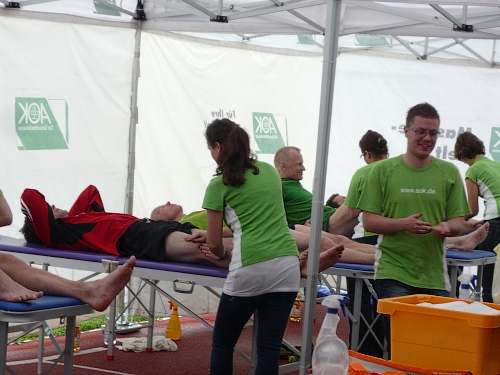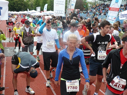 Die Stimmung auf den letzten Kilometern toppt das bisherige. Musik fast an jedem Eck live und aus dem Kasten, viele Zuschauer und wer schon am Ende ist, kann sich noch vor dem Zieleinlauf fit massieren lassen. Für das Beschreiben des letzten Weges fehlen mir die Worte, die Stimmung kann an den Bildern gedeutet werden.