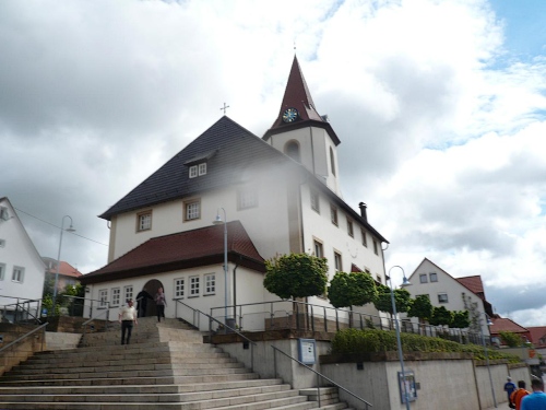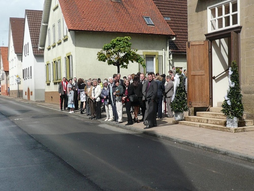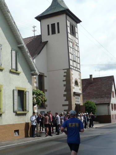 In Nordhausen (Kilometer 32,5) laufen wir in der Ortsmitte direkt an der Waldenserkirche (aus dem 18. Jahrhundert) vorbei. Die Kirchengemeinde hat gerade das Gotteshaus verlassen und geizt auch nicht mit Applaus.