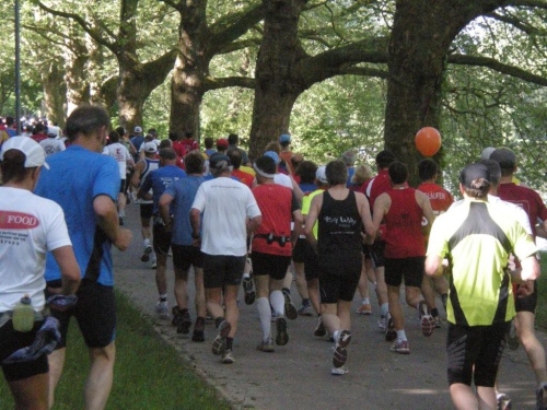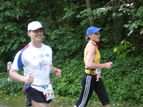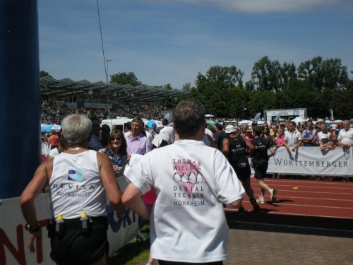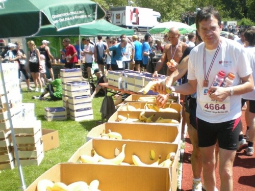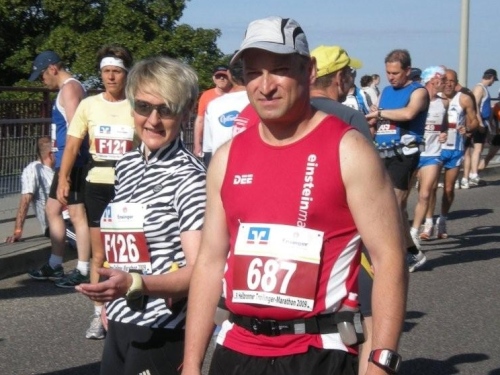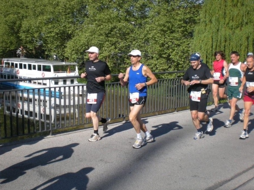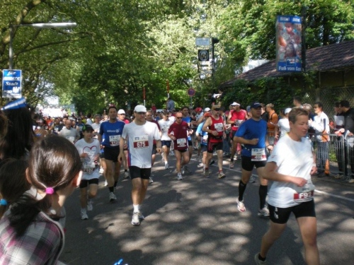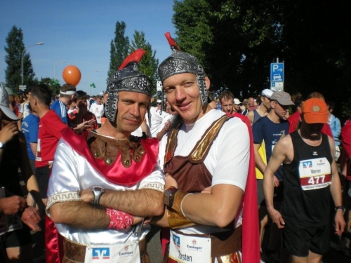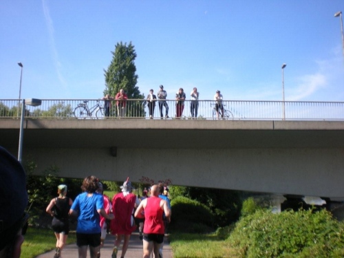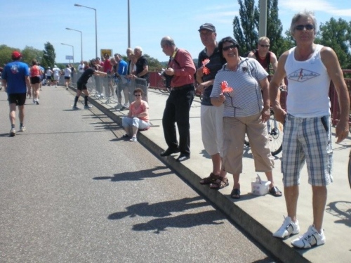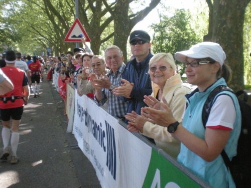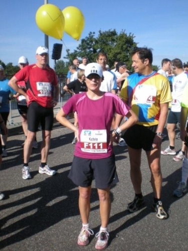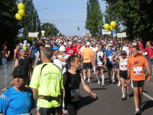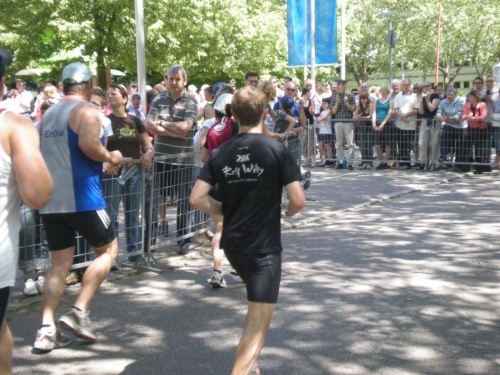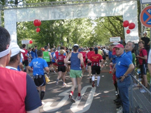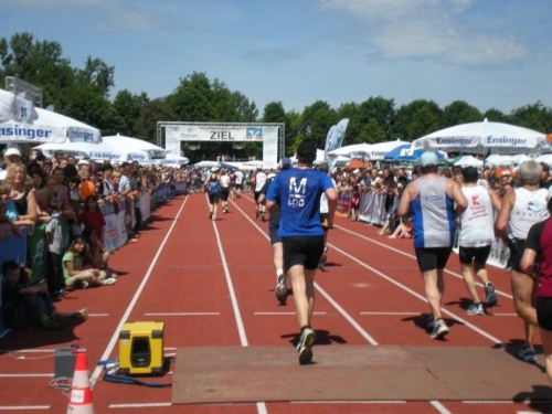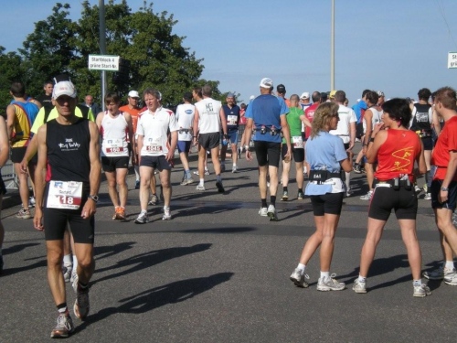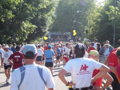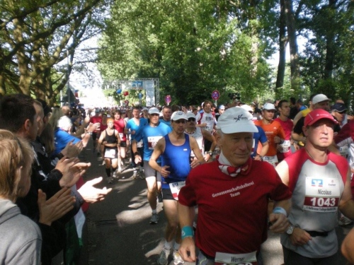 In der Menge der Halbmarathonis ist es schwierig, die Mitstreiter der ganzen Strecke zu finden. Holger kann ich leider nicht mehr zu seinem ersten Marathon gratulieren, welchen er trotz der Hitze, die er gar nicht mag, fast in der angestrebten Zeit geschafft hat.