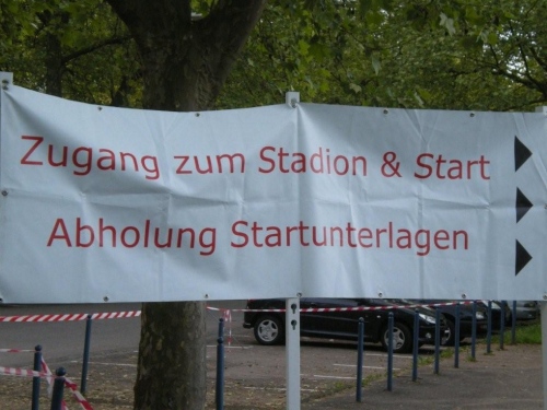 Mit guter Zeitreserve komme ich schon recht früh beim Frankenstadion an, ein paar Meter neben dem Eingang finde ich einen Parkplatz. Ich muss keine Stadionrunde zurücklegen und ich bin schon bei der Startnummernausgabe. Es ist recht ruhig hier, denn offenbar haben viele Marathonis das Administrative schon am Samstag erledigt. Die Nachmeldung geht schnell – um nicht zu sagen zu schnell. Aber dazu später.