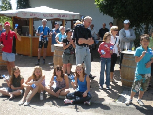 Neipperg ist erreicht und irgendwie beneide ich die Zuschauer, die mit bester kulinarischer Rückendeckung von ihren Sitzbänken aus versuchen, uns Energie zu verleihen, unterstützt vom Akkordeonorchester Brackenheim.