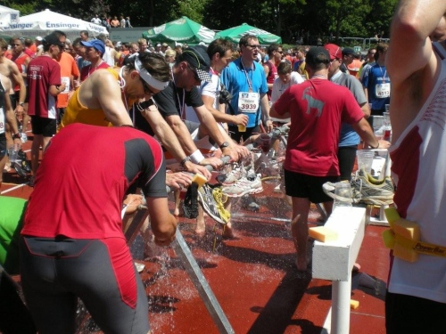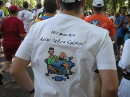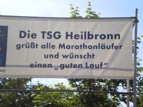 Einen Orden umhängen würde ich gerne den guten Geistern, die – zum ersten Mal in Heilbronn - bleifreien Gerstensaft ausschenken. Auch wenn es nicht mein Hausbräu ist. Das restliche Flüssige am Getränkestand des großen Sponsors lasse ich geografisch und auch sonst links liegen. Gut gemeint ist nicht immer gut gemacht; abgestandenes Leitungswasser bekommt mir auf der Marathonstrecke eindeutig besser als Sprudel, egal in welchen Arten er angeboten wird. Oder anders gesagt: lieber „flat water“ als Flatulenz.